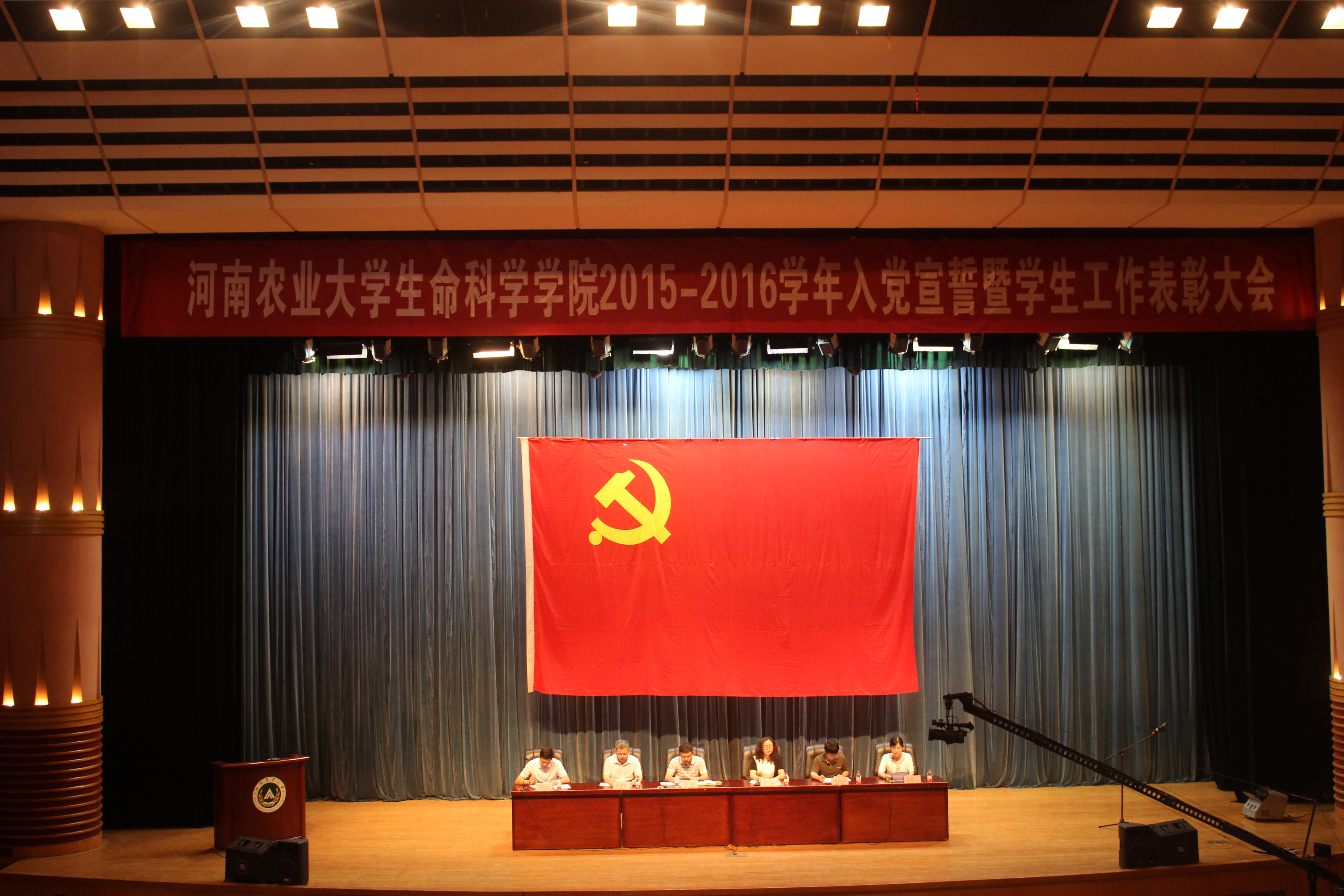 于文化路校区大礼堂举办了2015-2016学年入党宣誓暨学生工作表彰大会,校党委专职副校长、党委组织部常务副部长余磊出席了大会,银河娱乐App