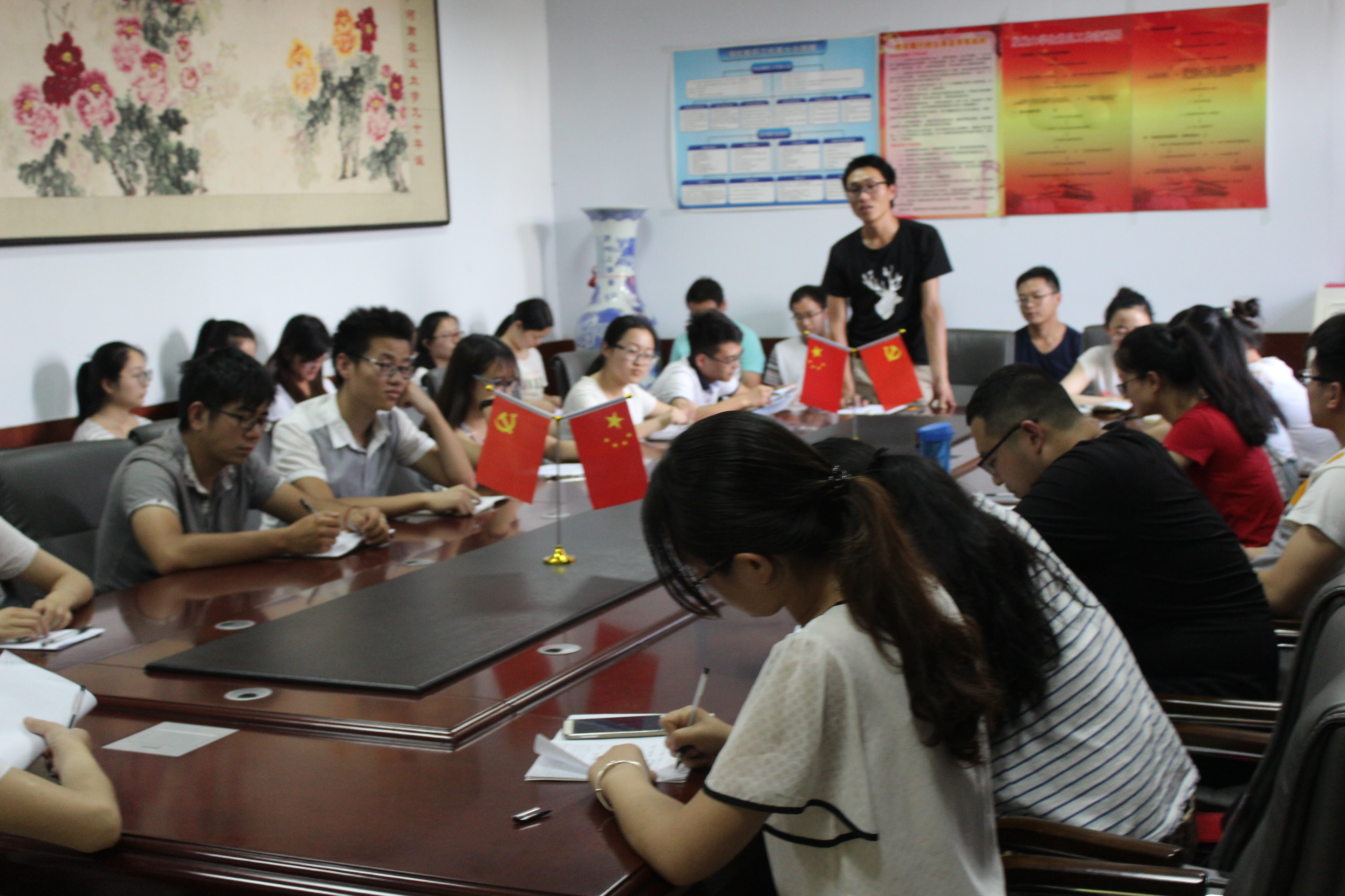首先由研究生党支部书记牛帅和谢瑶環向广大党员干部介绍了“两学一做”的实质内容、主要目标和总体要求等相关知识。随后优秀党员代表结合自身入党经历发言。同志们依次从入党初衷、个人经历以及对党的今后工作建议三个层面,进行了梳理和系统地阐述。最后,李晓老师再次强调了此次会议的意义,要求各位党员以身作则,树立共产党员的崇高信仰,在今后的学习工作中起到模范带头作用,发挥党支部的战斗堡垒作用。
