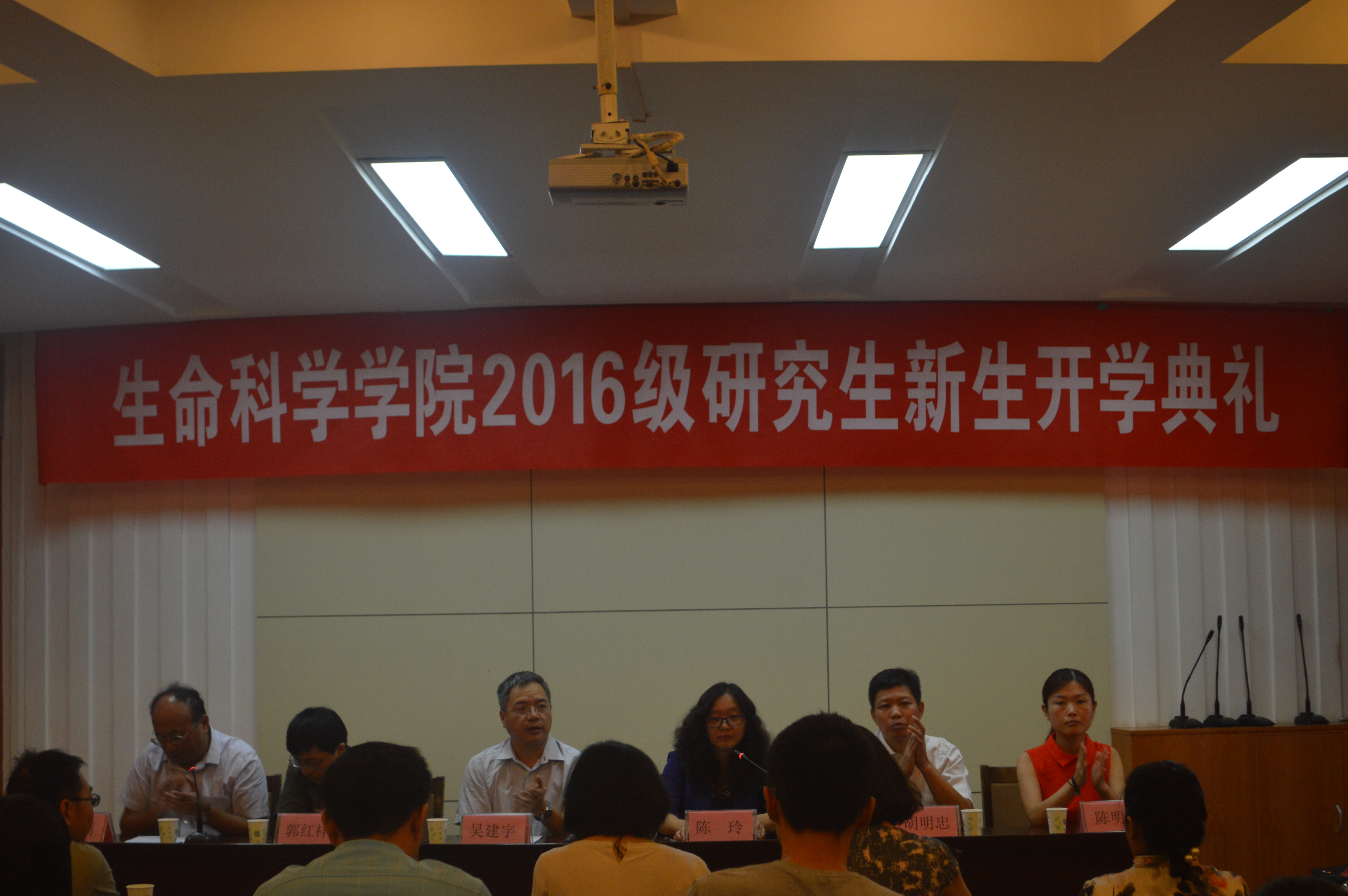 礼堂100人报告厅召开2016级研究生新生开学典礼。院党委书记陈玲、院长吴建宇、副书记胡明忠、副院长郑文明、郭红祥、陈明明、银河娱乐App