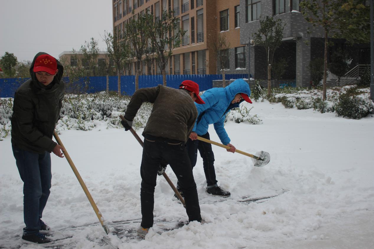 辅导员杜洋组织青年志愿者协会、爱心家教社成员及大部分班级同学参与了此次义务活动。在打扫现场,尽管温度很低,天上仍飘着稠密的雪花,但教职工和学生志愿者们热情高涨,全心全意地铲雪除雪清理道路。大家分工明确,通力合作,有的铲,有的扫,有的装,有的运,如火如荼的忙碌着;愉快的笑声、擦擦扫雪声、当当铲雪声交融在一起,似一曲欢乐的交响乐。在大家的齐心努力下,很快就清扫出一条条通畅的道路。