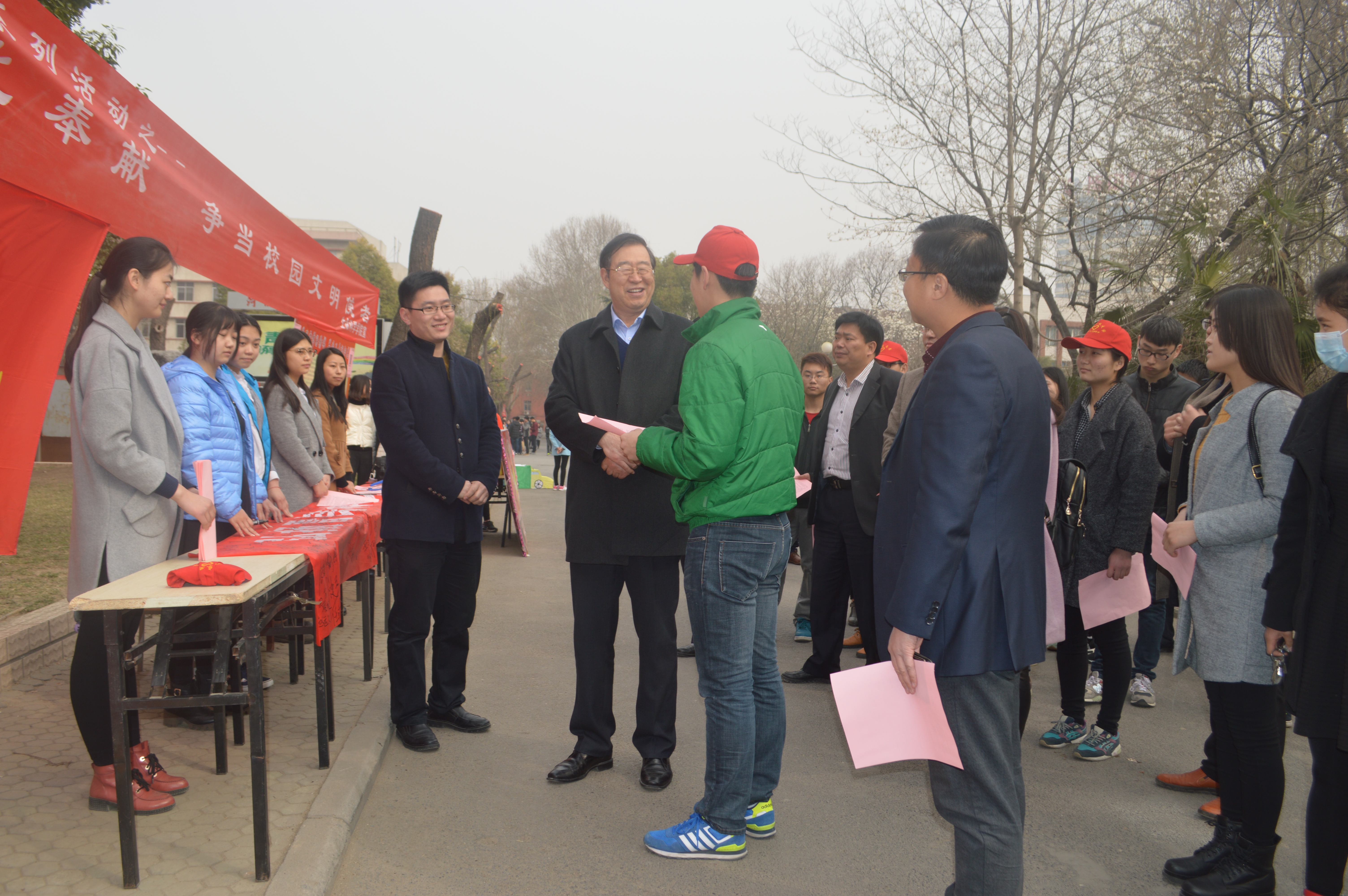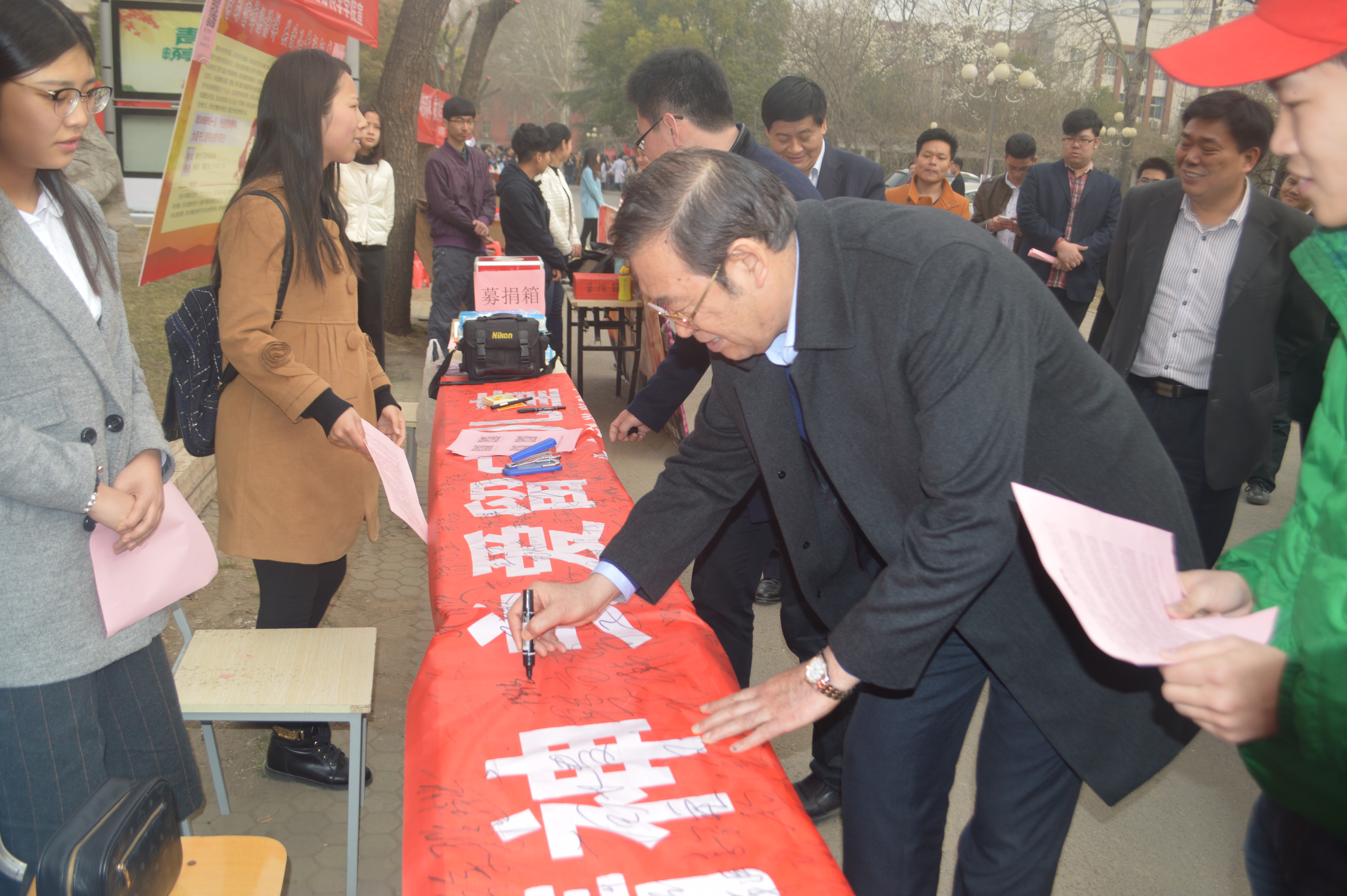 学生代表活动介绍后,纷纷在宣传条幅上签字,并为留守儿童捐出善款。校党委书记程传兴在接受采访中表示:在新时代下,雷锋精神永不过时,举办雷锋日活动是当代大学生弘扬雷锋精神,提高自我修养的重要体现。为留守儿童募捐,充分体现了无私奉献的雷锋精神,是学生们真正奉献爱心的体现。最后,程书记为银河娱乐App