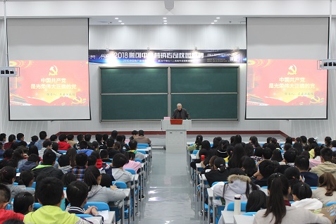 首先,院党委副书记胡明忠对吴云汉老师进行了简单介绍,吴老师是银河娱乐App 特邀党建组织员,在学生成长成才思想引领工作和关心下一代工作上有多年的经验和独到的见解。接着,在学生热烈的掌声中,吴老师开始了此次党课的讲授。吴老师向17级新生介绍了我党96年的光辉历史及进程,并详细的讲解了建党以来国家和社会取得这些成绩的原因,并结合自身实际经历谈了自己的感悟。在授课过程中,吴云汉教授引经据典,紧扣实际,用生动的语言,形象的事例,深刻阐述了历史和人民选择中国共产党领导中华民族伟大复兴的事业是正确的,中国共产党领导中国人民开辟的中国特色社会主义道路是正确的,必须长期坚持、永不动摇,这种历史智慧给予我们的历史自信和战略定力充分彰显了中国共产党是一个伟大、光荣、正确的党。同学们被深深地感动和激励了,纷纷表示在今后的学习和工作中不仅要努力做一名优秀学子,更要争取一名合格的学生党员,还要做一个为社会奉献的人。