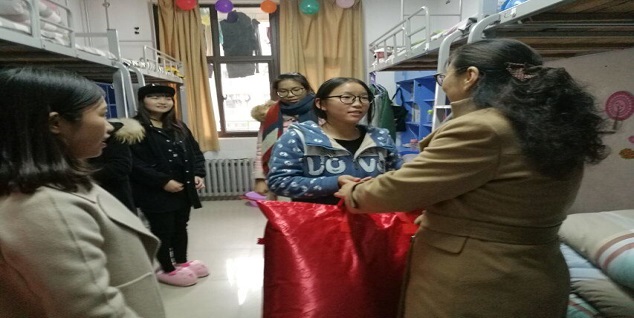 本次活动开始前,首先召开了17级本科及研究生学生代表座谈会。会议上,院领导老师们嘘寒问暖,无微不至地询问大家入学以来的生活和学习状况。会议结束后,在陈书记和吴院长的带领下,各位领导老师纷纷走进宿舍楼向家庭贫困的学生赠送“爱心棉被”,他们的到来让受助的同学很是感动,也让同学们感受到了家的温馨。老师们与学生近距离交谈,并叮嘱道:“有任何学习和生活上的困难一定要及时向银河娱乐App 或辅导员老师反映,银河娱乐App 会尽最大的努力帮助学生解决日常困难。”拿到棉被的同学们脸上洋溢着喜悦的笑容,纷纷表示将会以更加乐观的态度面对生活,争取在学习和生活上取得更大的成就,早日回报银河娱乐App 、回报社会。