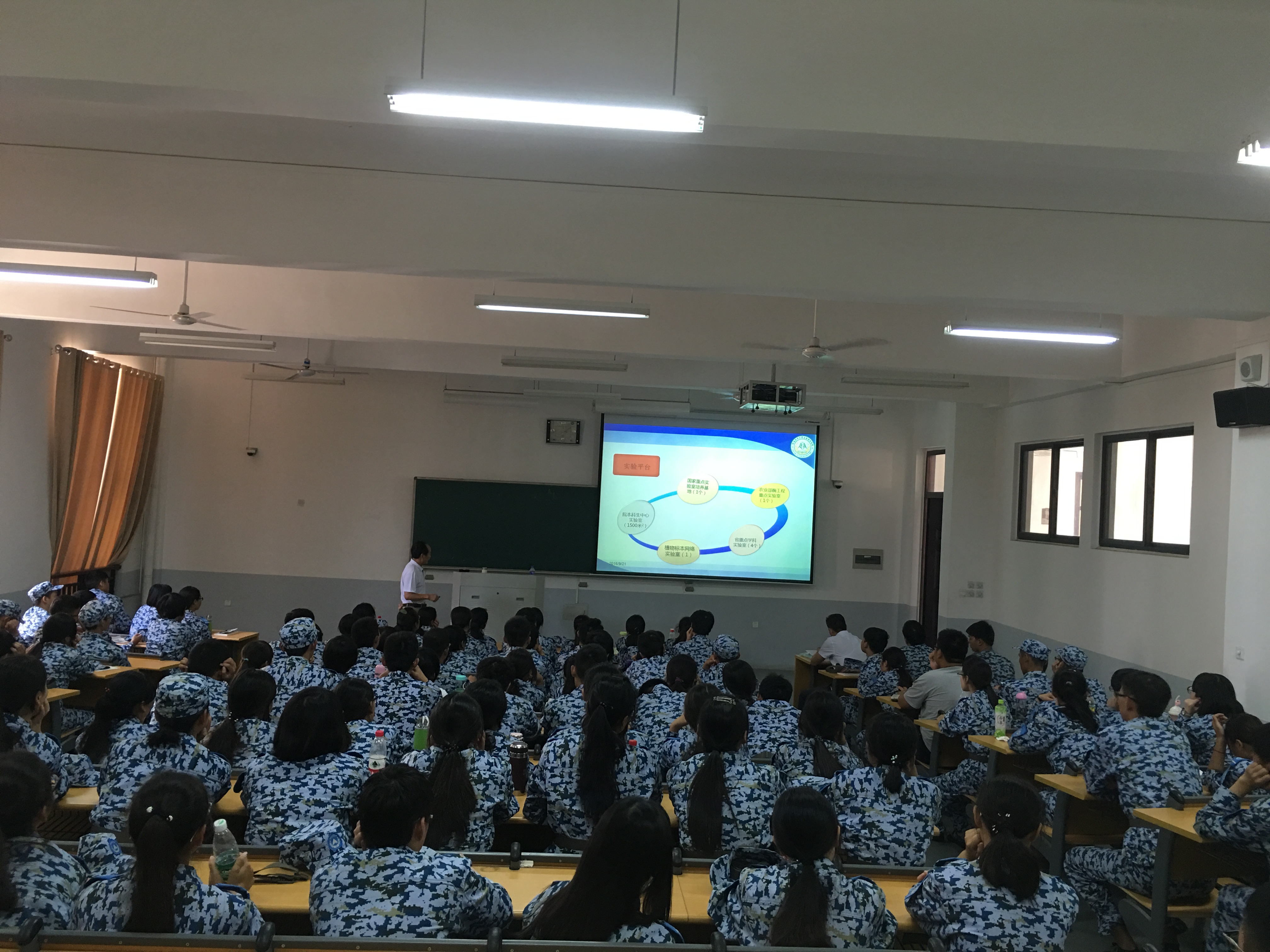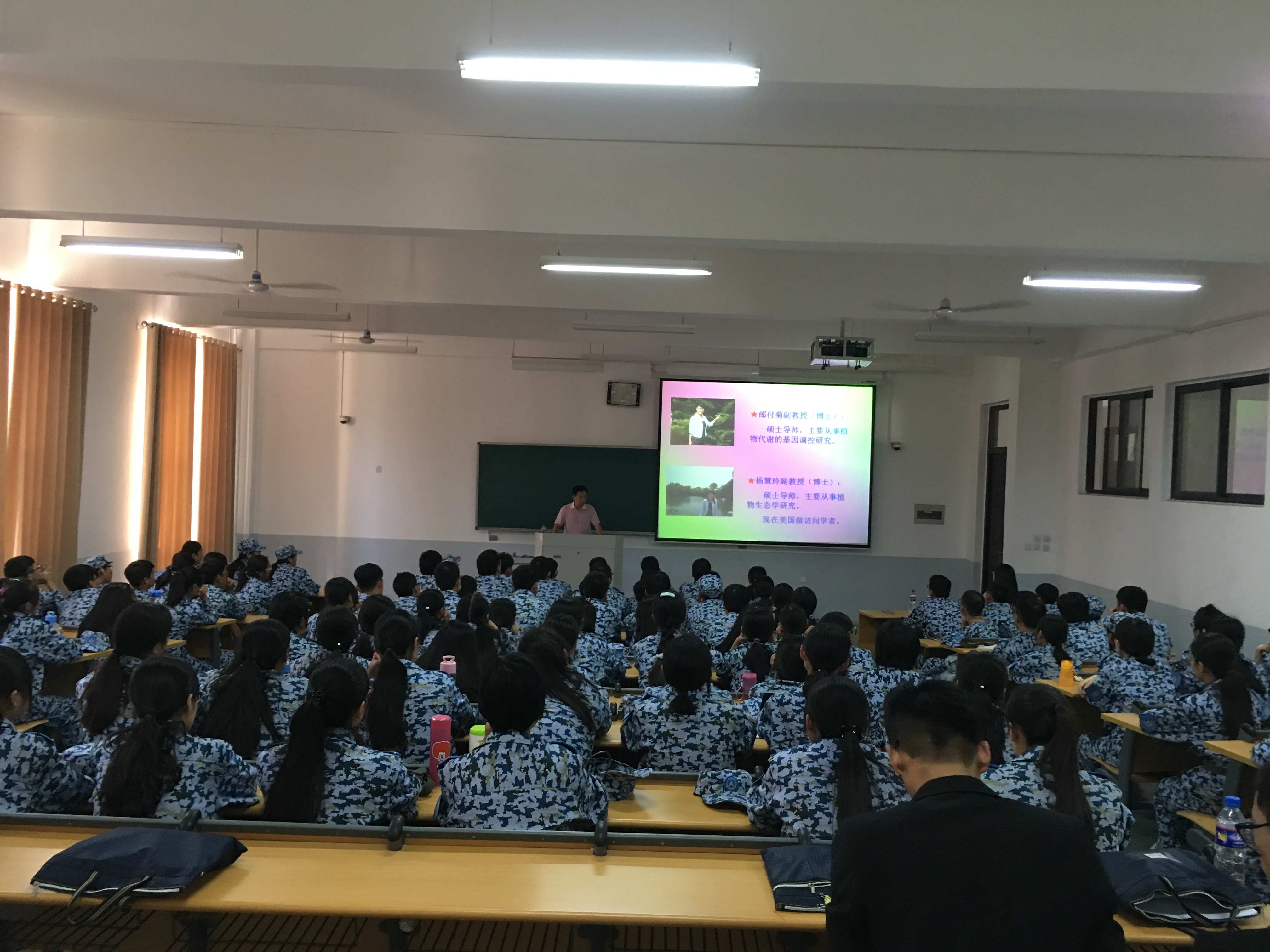 的科研成果和生化系的各位老师以及实习情况等,随后陈老师希望新生们可以在大学生活里做到“身体强壮-身体好、性格健全-情商高、能力超群-能力强”。最后,陈老师希望新生们可以学会自我管理、自我约束,在大学里能收获颇丰。生物科学专业是由袁志良老师介绍,首先,袁老师强调了大学生活的重要性,要定好自己的目标。随后,袁老师向新生们讲述了当今社会中的就业问题和生物科学的就业前景。三位老师在大会中的讲解条理清晰,都结合了各专业在实际生活中的应用,新生们在大会上认真听讲并做了笔记。会议最后,进行了老师与学生的互动环节,老师们细心为新生们解答疑问,使新生们更好的了解了自己的专业。