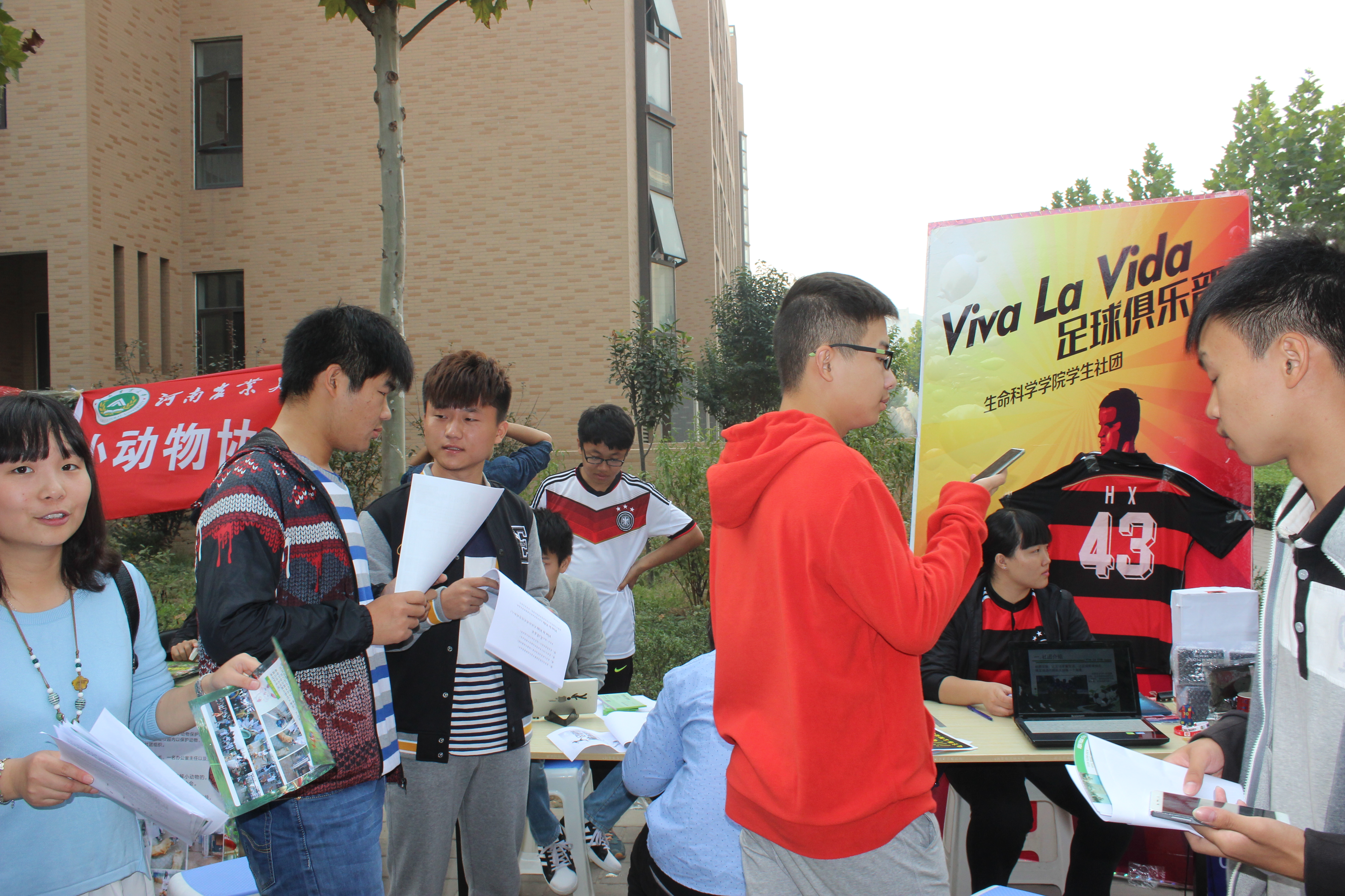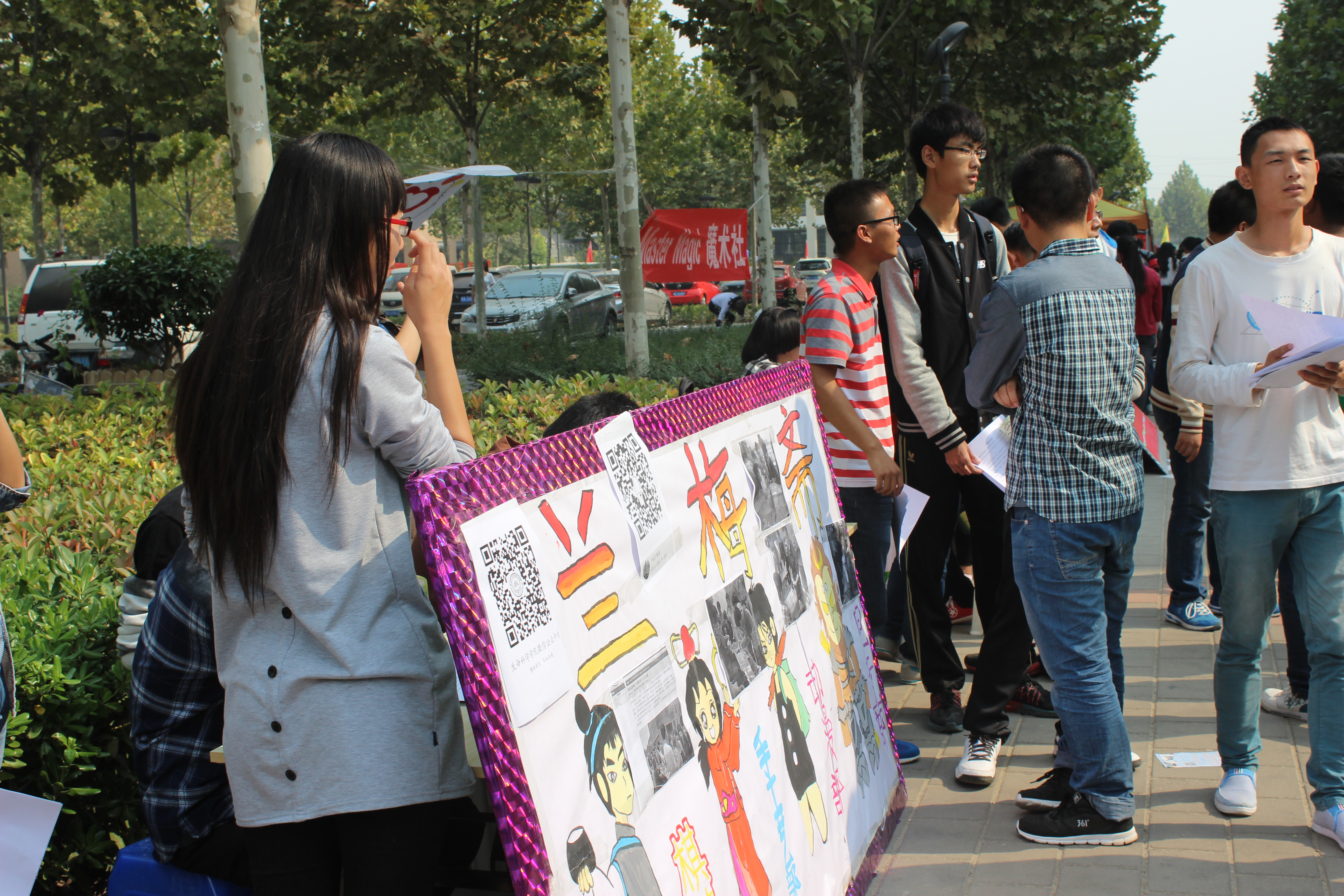 学生会社团联合会携手院国风英影社、兰梅斋、足球社、院志愿者协会等七个社团,在龙子湖校区举行一年一度的招新活动。