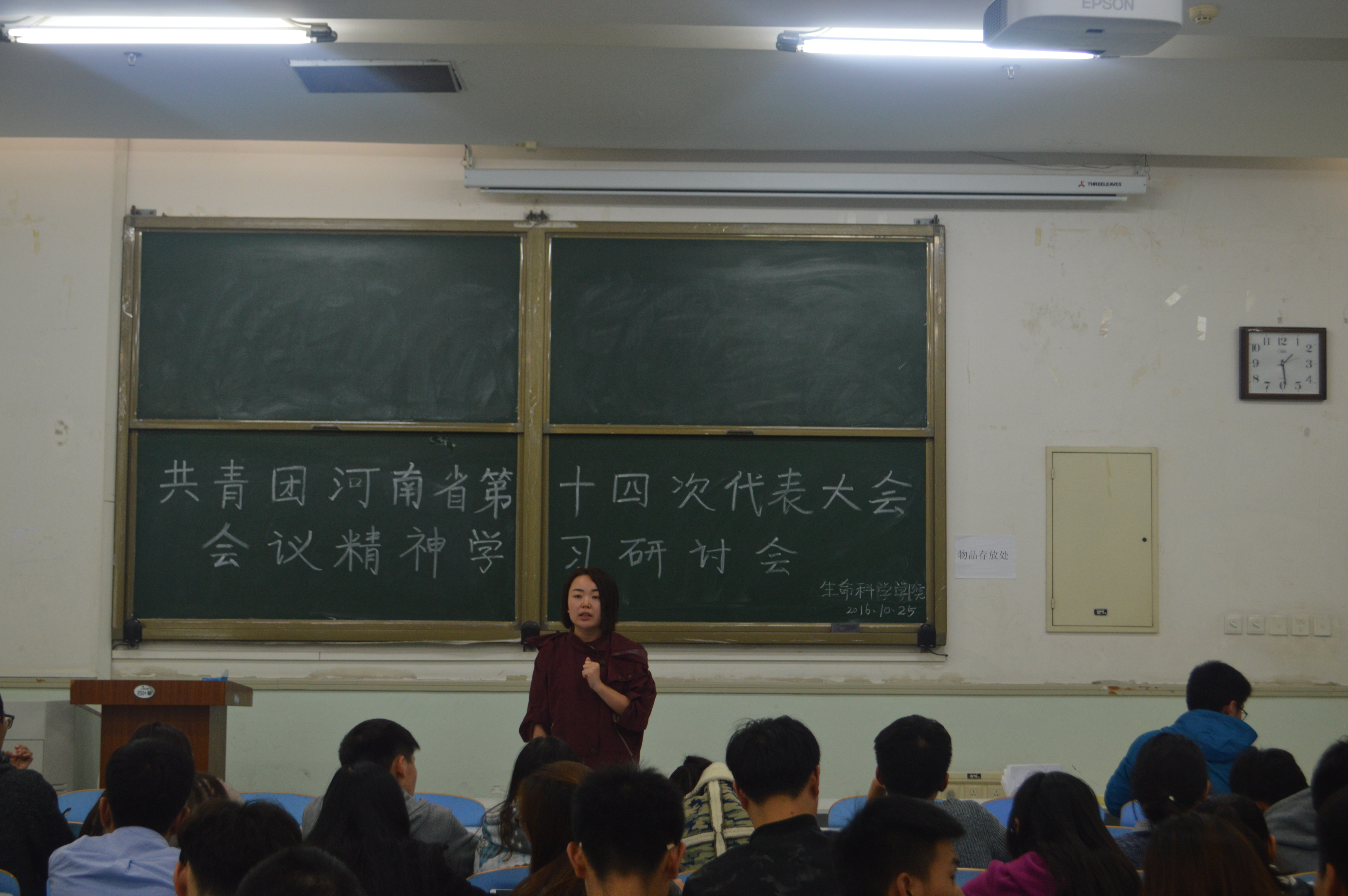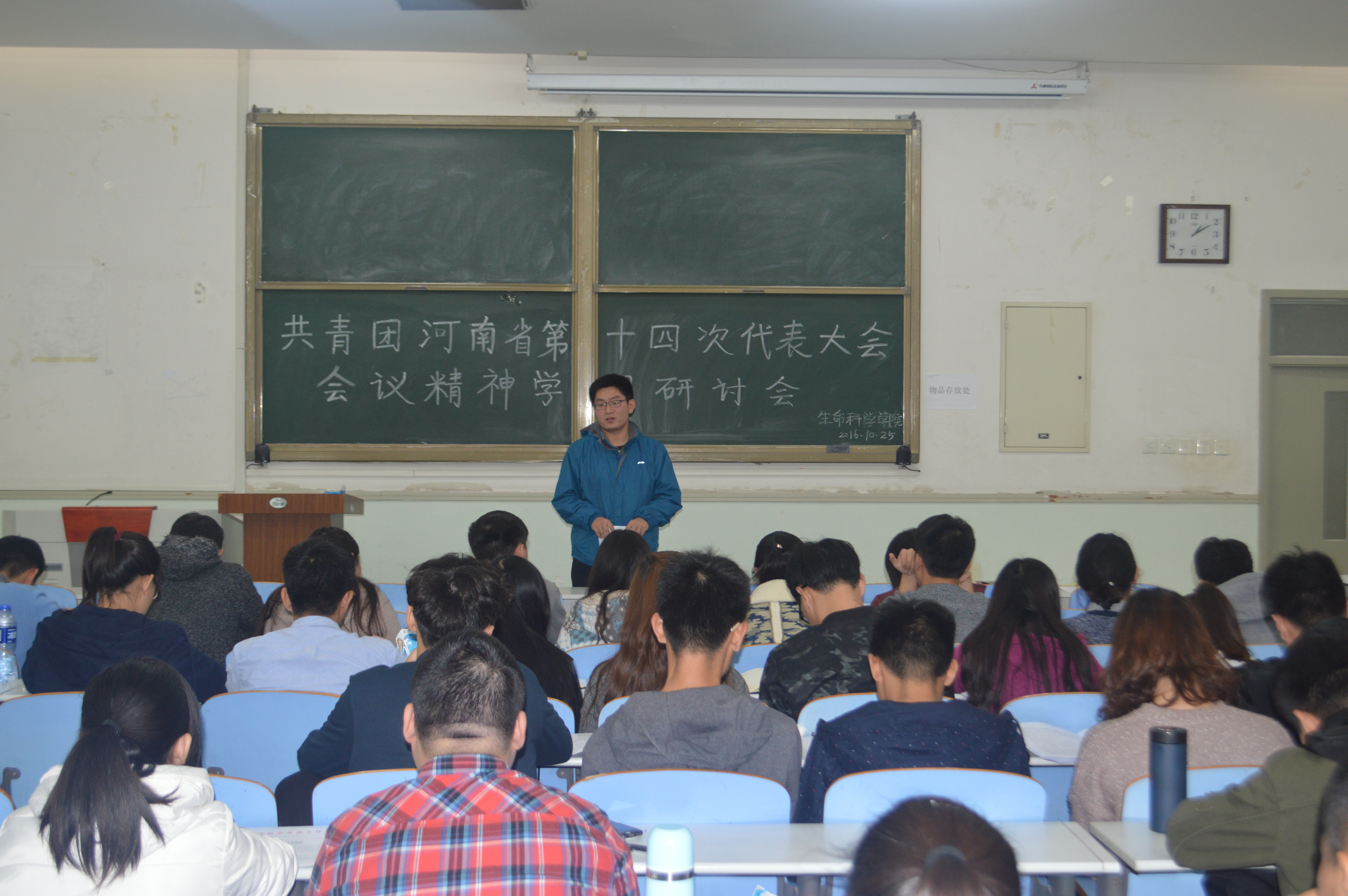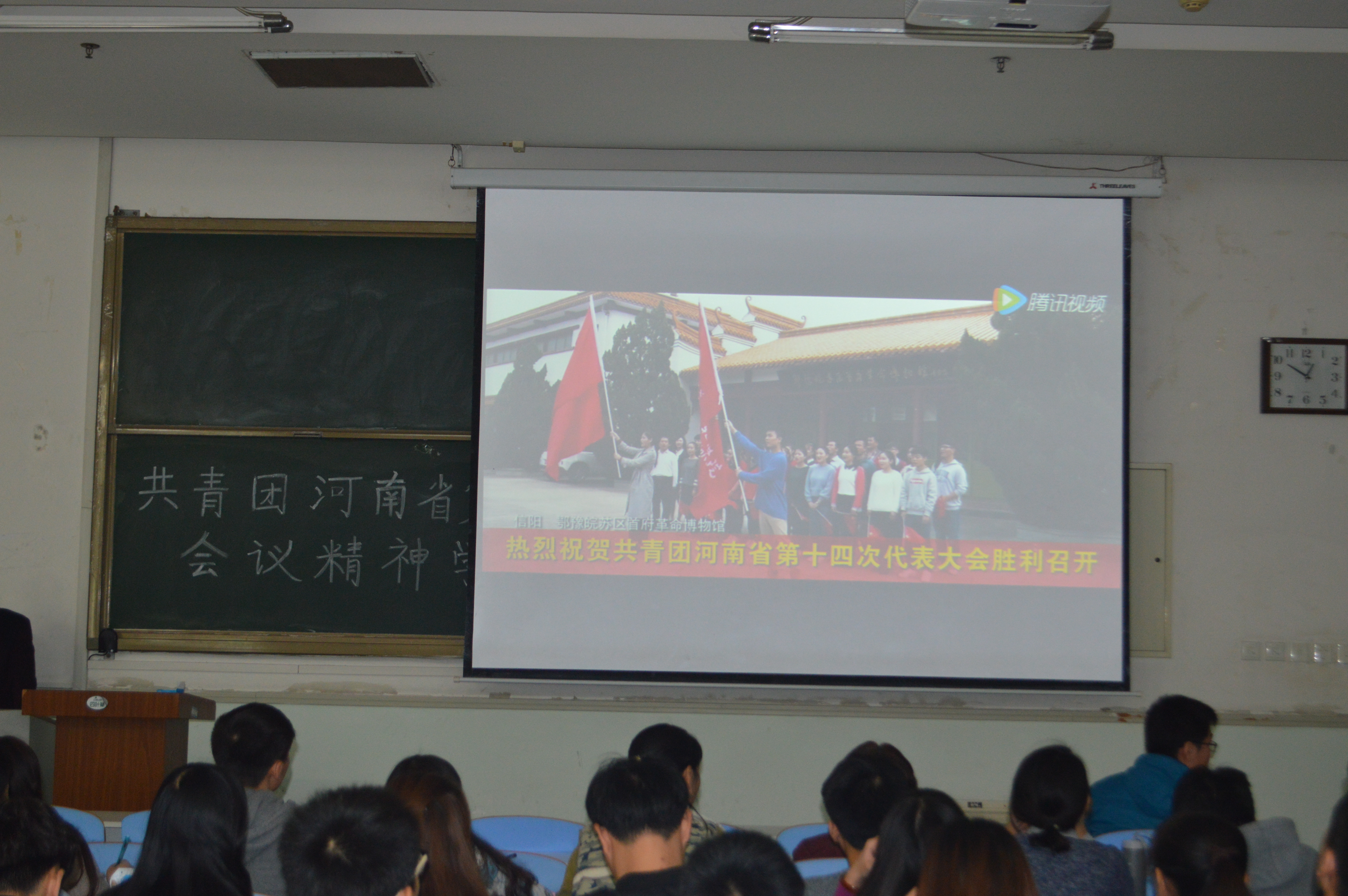 在文化路校区工程楼102教室召开了共青团河南省第十四次代表大会会议精神学习研讨会。会议由院团委书记雷雯主持,团委副书记黄笑,团委委员及干事,14、15级各班班长、团支书以及银河娱乐App