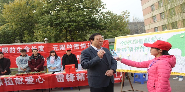 银河娱乐App 的雷锋日活动,志愿者们开展了学习雷锋、让“雷锋精神”溢满校园的志愿活动。包括为过往师生发放“有限的生命长度,无限的雷锋精神”宣传单、快递代领、“领养绿植,公益先行”募捐等一系列活动。他们以志愿服务为目标,弘扬了无私奉献、助人为乐精神,真正地把“雷锋精神”带到了每个人的身边。校党委书记程传兴参观了活动现场,在听取银河娱乐App 学生代表关于雷锋日系列活动特别是“领养绿植,公益先行”的活动介绍后,为留守儿童捐出了善款。程书记在接受院记者团采访时对银河娱乐App 此次活动给予了高度评价,他表示:“刚才我看到生命银河娱乐App 的同学们,志愿于学习雷锋的活动中,做到了我们所说的‘学习雷锋从我做起,从现在做起,从身边每一件小事做起’。我真的感觉到我们每一个同学都像雷锋那样,是个帮助他人、助人为乐的有大爱的人。为留守儿童募捐,充分体现了无私奉献的雷锋精神,是学生们真正奉献爱心的体现。”