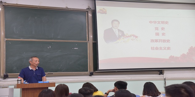 李世国老师以《以史鉴今,着眼未来,为实现中国梦立志成才》为主题,从中华文明史、党史、国史、改革开放史和社会主义史为切入点,就中华民族五千年的历史经验、中国近代历史的几个根本问题、新中国的光辉历史和为实现中华民族伟大复兴的中国梦成长成才等四个方面做了深入浅出的讲解。李老师提到,学习历史可以知更替,强动力,明未来,引导同学们以史为鉴,增强自身的历史责任感。同时,李老师结合自身经历,要求同学们要坚定理想信念、刻苦学习、遵规守纪和树立群众观点,为实现中国梦打牢坚实的思想、本领、品德、和方法基础。讲解中,李老师寄语同学们,政治上要坚定,学习上当标兵,集体活动作骨干,遵规守纪是楷模,文明诚信为表率,社会工作挑重担,希望同学们都能成为“立大志,干大事”的社会主义合格建设者和可靠接班人。此次报告会在热烈的掌声中落下帷幕,同学们纷纷表示受益匪浅,报告会取得了圆满成功。