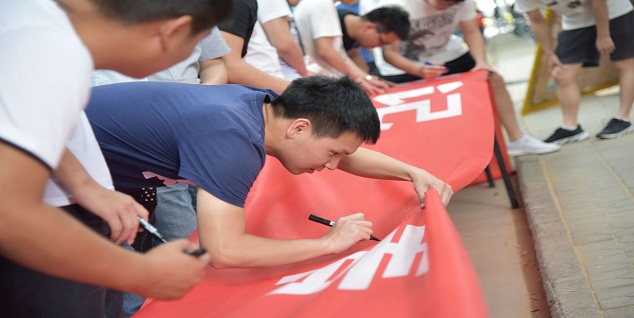 合影结束后,银河娱乐App 毕业生前往8号楼前进行签名活动,毕业生们在条幅上写满了毕业生的寄语,表达了毕业生对未来的期盼,母校的不舍,以及对老师的感谢。此刻,所有的情义都化作真诚的祝福,即将毕业的学子拥抱热谈,纷纷表达了对母校的不舍之情。