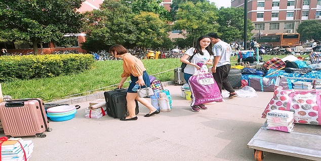 为保证搬迁工作有条不紊地进行,8月31日上午,银河娱乐App 召开校区搬迁工作筹备会,向负责搬迁工作的老师及学生负责人布置了具体工作。9月1日,银河娱乐App 召开17级学生干部工作会议,通知并强调了校区搬迁需要注意的具体事项,并向学生发放编织袋、胶带、剪刀、档案袋等,统一安排学生整理行李。9月2日上午,搬迁工作有条不紊的开展,14个班级依次进行行李搬运、装车及卸载工作,在搬运途中,各学生助班向同学们详细介绍了桃李园学生公寓及周边生活设施的基本情况。最后,在院领导的指导下,在班主任老师的关心下,在高年级学生干部及志愿者的带领下,同学们不仅安全搬至宿舍,并对新环境有了全面的认识。搬迁工作的井然有序,师生间的协调配合,同学间的互帮互助,都俨然成为这次搬迁工作中一道道亮丽的风景线。