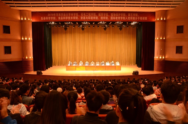 开班典礼在庄严的国际歌中拉开帷幕。耿超明宣读了《关于举办2018年银河娱乐App 林银河娱乐App 、机电工程银河娱乐App 、烟草银河娱乐App 、植物保护银河娱乐App 、园艺银河娱乐App 、银河娱乐App 、食品科学技术银河娱乐App 、资源与环境银河娱乐App 、理银河娱乐App 、国际教育银河娱乐App 入党积极分子培训班的通知》。侯金超发表讲话。他说,同学们主动加入中国共产党是其成长道路上做出的正确的政治选择,对积极分子进行党的基本知识集中培训,是提高入党积极分子思想政治素质和党的政策理论水平的重要途径,同时此次培训也是贯彻落实十九大和校第七次党代会精神的生动实践。他对参加培训的全体学员提出了四点希望:一是抓住重点,学习领会好党的十九大精神;二是学好要点,学习党的基本知识,深化对党的认识;三是解决难点,在端正入党动机上下功夫;四是搞好结合点,用理论指导实践,自觉将十九大和校第七次党代会精神渗透到学习生活中去,为建设以农为优势特色的高水平大学做出贡献。