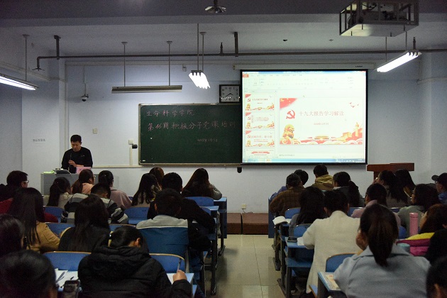 除集中的专题培训外,银河娱乐App 分党校于11月13日下午在文化路校区农业推广楼407教室组织了学习党的十九大精神、校七次党代会精神和观看党史等活动,银河娱乐App 第四十六期全体入党积极分子参加了培训,院党委副书记胡明忠主持并授课。会上,胡明忠就马克思主义在中国的发展传播和中国共产党历次党代会的简史进行了宣讲,他强调我党在发展历程中十分注重创新,在政治上、理论上、实践上取得了一系列重大成果。他要求大家深入了解党的发展历程,从历史中认真学习党的精神,深刻领会习近平新时代中国特色社会主义思想,争取早日成为一名合格的共产党员。