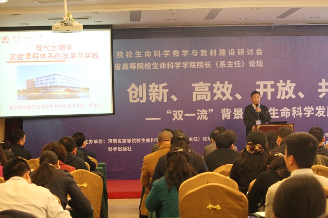 11月24日上午,卢龙斗教授应邀出席第十一届河南省高等院校生命科银河娱乐App 长论坛会议并作《现代生物学实验课程体系的改革与实践》的经验交流报告。他以新乡医银河娱乐App 三全银河娱乐App 生物与基础医学实验教学中心的建设与发展为例,从实验课程体系改革的背景、思路、原则、实践及效果等方面进行阐述。通过对普通生物学、微生物学、细胞生物学等核心课程的原有实验项目与更新实验项目进行对比,分析了存在的问题及解决问题的思路、成效,介绍了模块式教学在实验教学中的应用,使实践教学更加系统化、整体化。