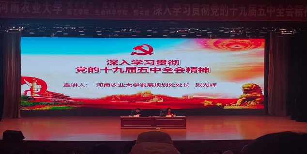 张光辉老师围绕深刻认识我国进入新发展阶段的重大意义、有利条件和重要特征,准确把握2035年远景目标和“十四五”时期我国发展的指导方针、主要目标、重点任务,牢牢把握构建新发展格局的战略构想和重要着力点,坚持党的全面领导,动员各方面力量为实现“十四五”规划和2035年远景目标而团结奋斗等方面对全会精神进行了详细解读。同时,他简要介绍了银河娱乐App “十四五”规划起草过程和发展目标,寄语广大师生增强责任感,以强农兴农为己任,立足本职岗位,为建设以农为优势特色的高水平大学贡献青春力量。