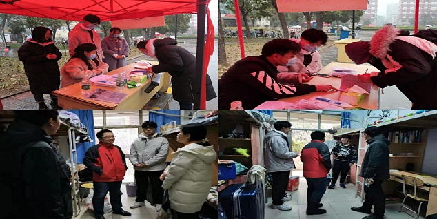 为确保同学们平安返校、健康复学,在学生返校前,银河娱乐App 全面摸排了返校学生健康状况、行动轨迹、返校方式等,扎实细致做好各项准备和迎接工作。一是提前14天要求学生做好健康信息上报,统计符合返校条件学生,并提醒学生准备购买返程车票;二是提醒学生做好返程中的疫情防控,戴好口罩,做好个人防护,安全返校;三是专门统计各年级学生27日、28日两天返校情况,及时掌握学生返校情况动态。四是在文化路校区、桃李园学生宿舍和龙子湖校区分别安排学生报到签到处,安排专人负责签到工作,并为每个返校学生准备口罩一包;五是专门开会协调学生返校相关工作,并按照疫情防控要求,引导返校学生安全有序进校园、进宿舍。