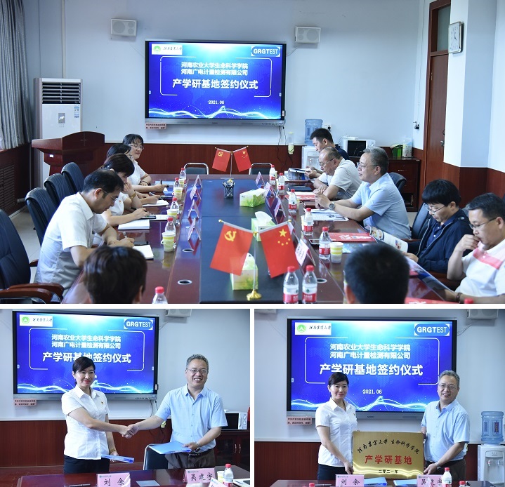 、河南广电计量检测有限公司产学研基地签约仪式”。河南广电计量检测有限公司(河南广电)总经理刘余,副总经理张闪烁,人事副总监方庆珍,副总工吴昊一行四人出席签约。银河娱乐App