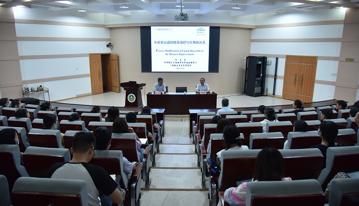 李来庚研究员以《木质素合成的精准调控与生物质改良》为题,围绕植物细胞壁生物合成的分子机理、木质素生物合成途径相关基因,讲解了植物的细胞壁对植物本身的作用和对人类的重要性,以及改变木质素提高细胞壁生物质转化利用效率和木质素生物合成关键基因LTF1的调控机制,并对在场师生提出的问题进行了交流和解答。同时李来庚研究员邀请银河娱乐App