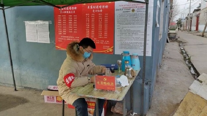 在居住地所在小区出口轮岗,检测进入者体温,同时制作签发出入证、核实出入证领取者的户口与身份、派发出入证到个人,以这样严格的制度尽可能阻断疫情的传播和扩散。