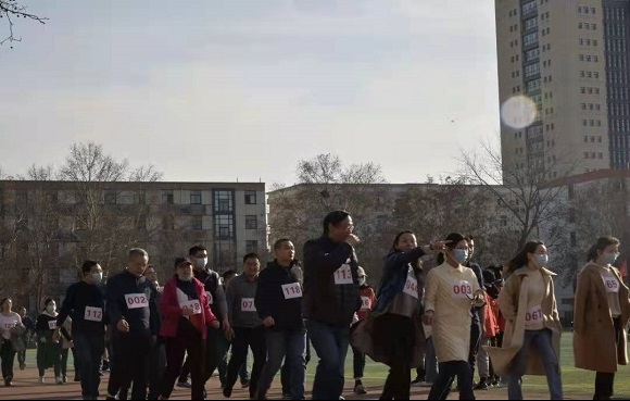 全体教职工大会结束后,全院教职工一起来到田径场开始健步走活动。此次活动既定行程目标两公里,即绕操场五圈。老师们或身姿矫健、快步前行,引得志愿者欢呼加油;或结伴而行、谈笑风生,同事之间相互交流工作生活经验。一团祥和喜气,激荡生命风采,银河娱乐App