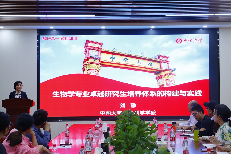 党委书记、教育部新世纪优秀人才刘静教授应邀作主题报告。她以《生物学专业卓越研究生培养体系的构建与实践》为题,从国家要求、培养体系、培养方法、培养模式四个方面进行了阐述。结合多年从教经历,她分享了中南大学研究生培养的经验和做法,勉励青年导师要及时实现角色的转换,根据学生特点不断改进和创造新的指导方法,以高度的责任心和使命感担负起培养新一代高层次人才的重任。