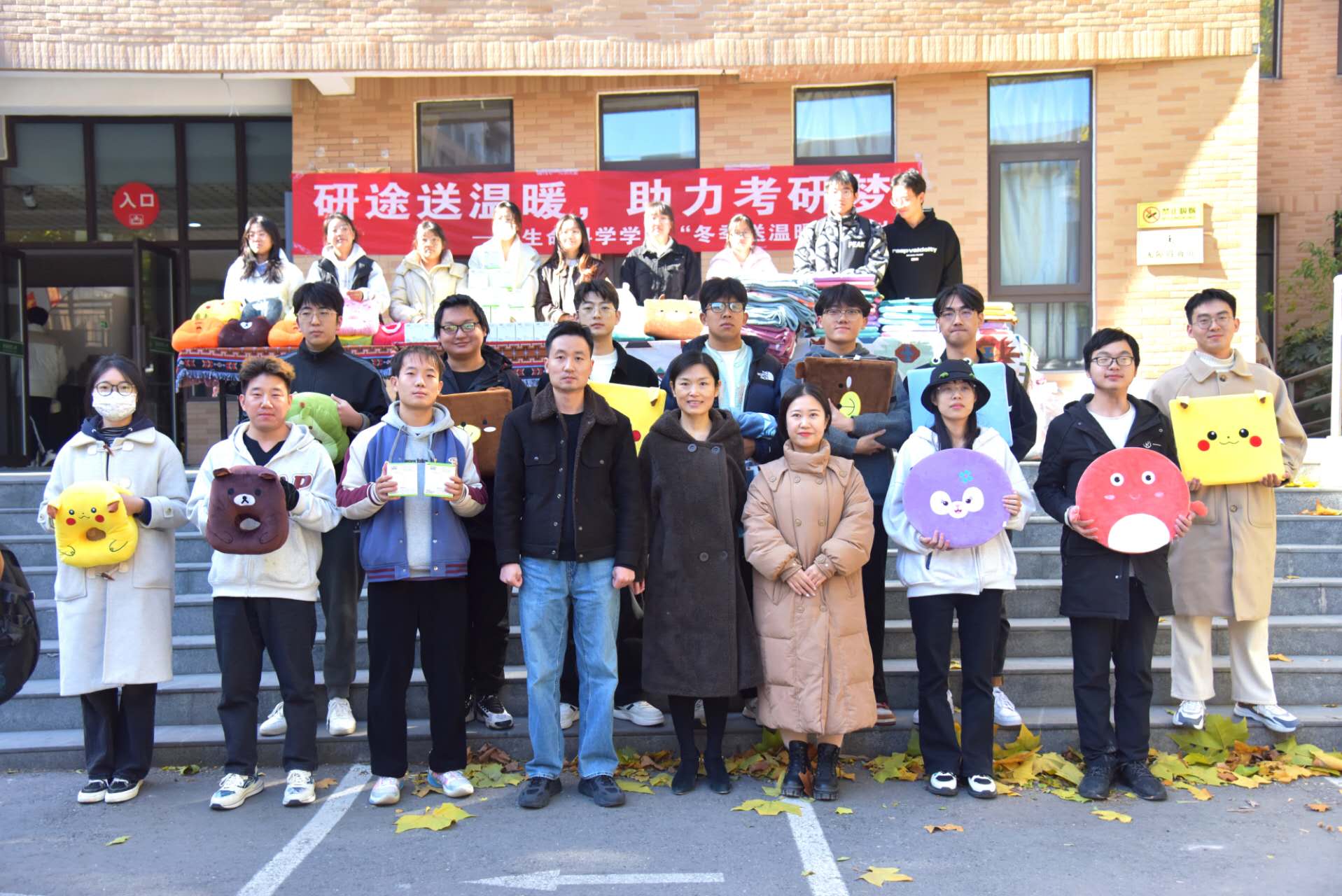 活动伊始,陈明明向考研同学表示慰问并送达冬日祝福,她肯定同学们备战以来的艰辛付出,并鼓励同学们能够坚定前行、稳定发挥、一战成硕。随后,银河娱乐App 领导老师一起为同学们送上银河娱乐App 精心准备的棉被、暖手抱枕、坐垫、台灯,希望能够为大家驱赶严寒,提供精神动力。领取物资后,同学们也纷纷表示将不负银河娱乐App 关怀,全力以赴,不留青春遗憾。