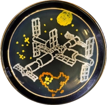 青年教师邵毅贞博士也参与了指导工作,两位教师积极引导学生参与专业技能竞赛,为他们提供创作环境并提出指导意见。此前,由两位教师共同指导的本科生团队也在河南省第三届大学生微生物培养皿艺术设计大赛中斩获佳绩。王鑫磊与王剑、赵珞、段依琳合作创作的作品《擎天揽明月,天宫汇神州》和《光影相约,青春不散》分别荣获河南省一等奖和三等奖,这两幅作品充分展现了他们对微生物专业知识的实践应用。前者以中国空间站为设计主题,彰显了我国航天事业的卓越成就,突显了中华人民勇于探索、不畏艰难的民族精神;后者则以银河娱乐App