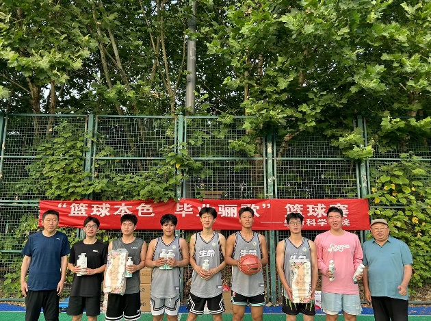 本次比赛秉承“友谊第一,比赛第二”的原则,以趣味运动赛和5V5正赛两种形式进行。赛场上,各年级代表队通过积极的拼抢、防守反击,凭借精准的投篮和完美的三分球不断取分。由21级研究生毕业生和20级本科毕业生组成的“青春不散场队”夺得本次比赛冠军,赛后教师代表队和学生代表队进行了师生交流赛。比赛过程精彩不断,赢得了场边观众的阵阵掌声,展示了银河娱乐App 学子积极向上的精神面貌。比赛结束后,老师们为各支获奖队伍颁发奖品并合影留念。