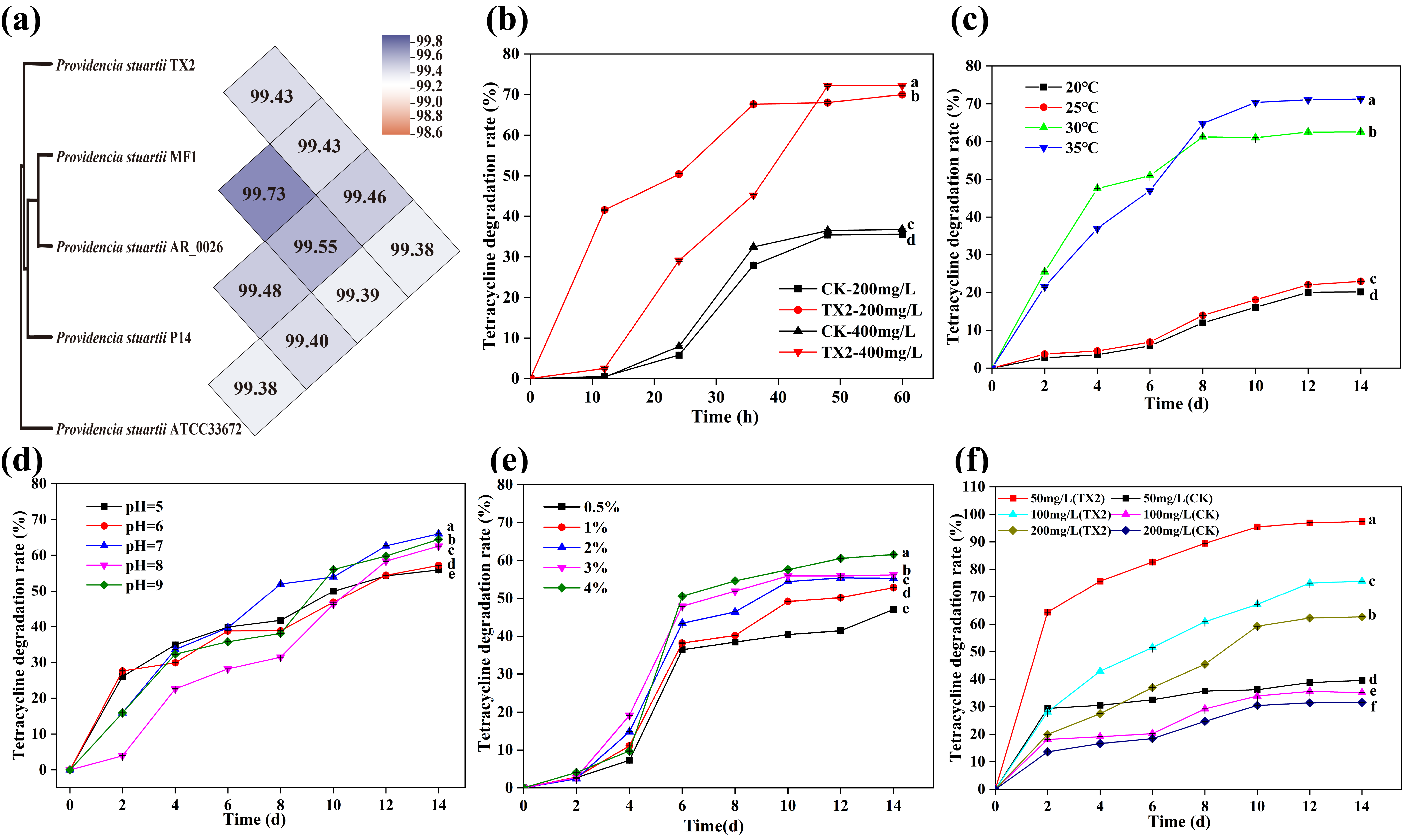 Providencia stuartii TX2。TX2在48 h内对初始浓度为400 mg/L TC的降解率达到72.17%(图1)。