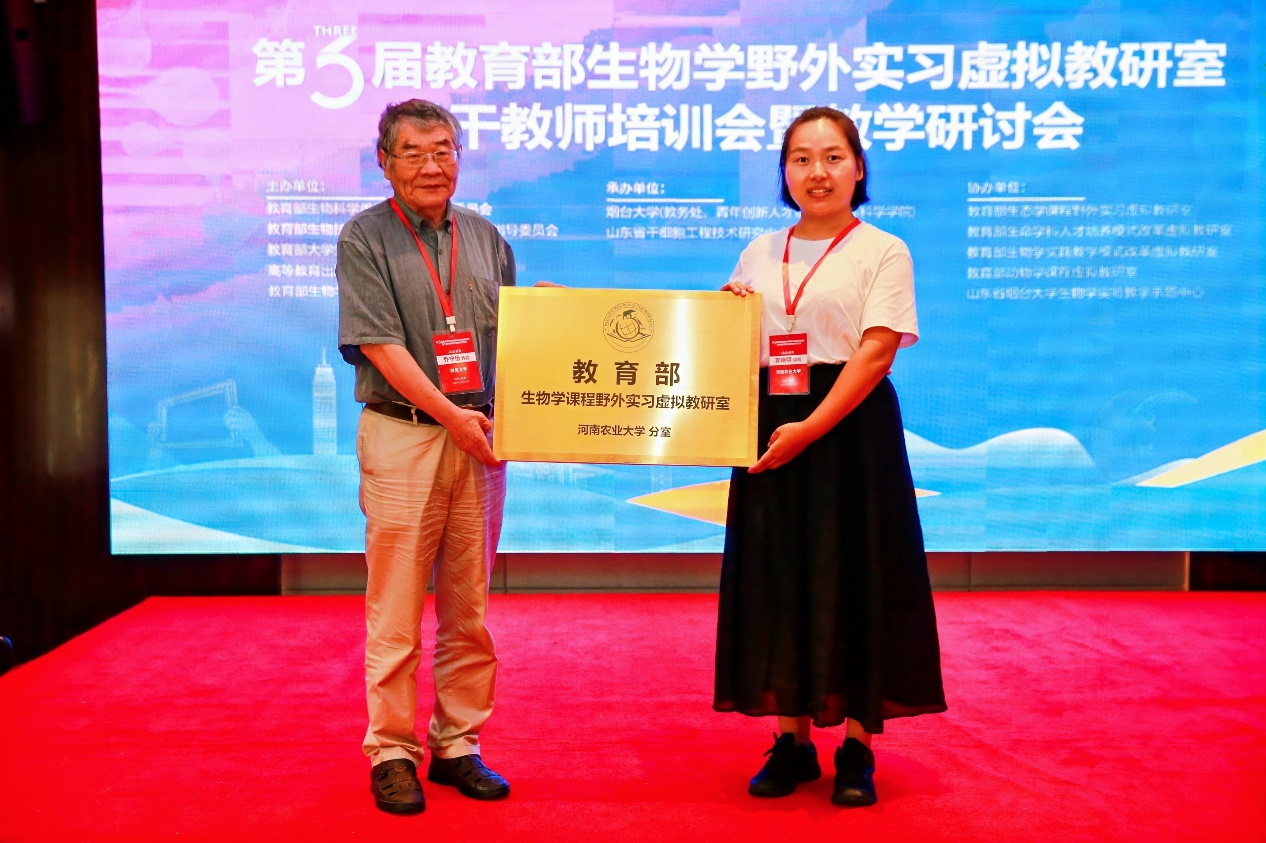 2024年8月14-19日,“第三届教育部生物学课程野外实习虚拟教研室骨干教师培训会暨教学研讨会”由教育部生物科学类专业教学指导委员会、教育部生物技术、生物工程专业教学指导委员会、教育部大学生物学课程教学指导委员会等单位联合主办,烟台大学承办。会上,教育部与中科协英才计划专家委员会副主任兼秘书长、国家级教学名师乔守怡教授代表教育部生物学课程野外实习虚拟教研室为银河娱乐App 分教研室授牌。银河娱乐App 教师代表也与兄弟院校的教师进行了深入广泛的交流。