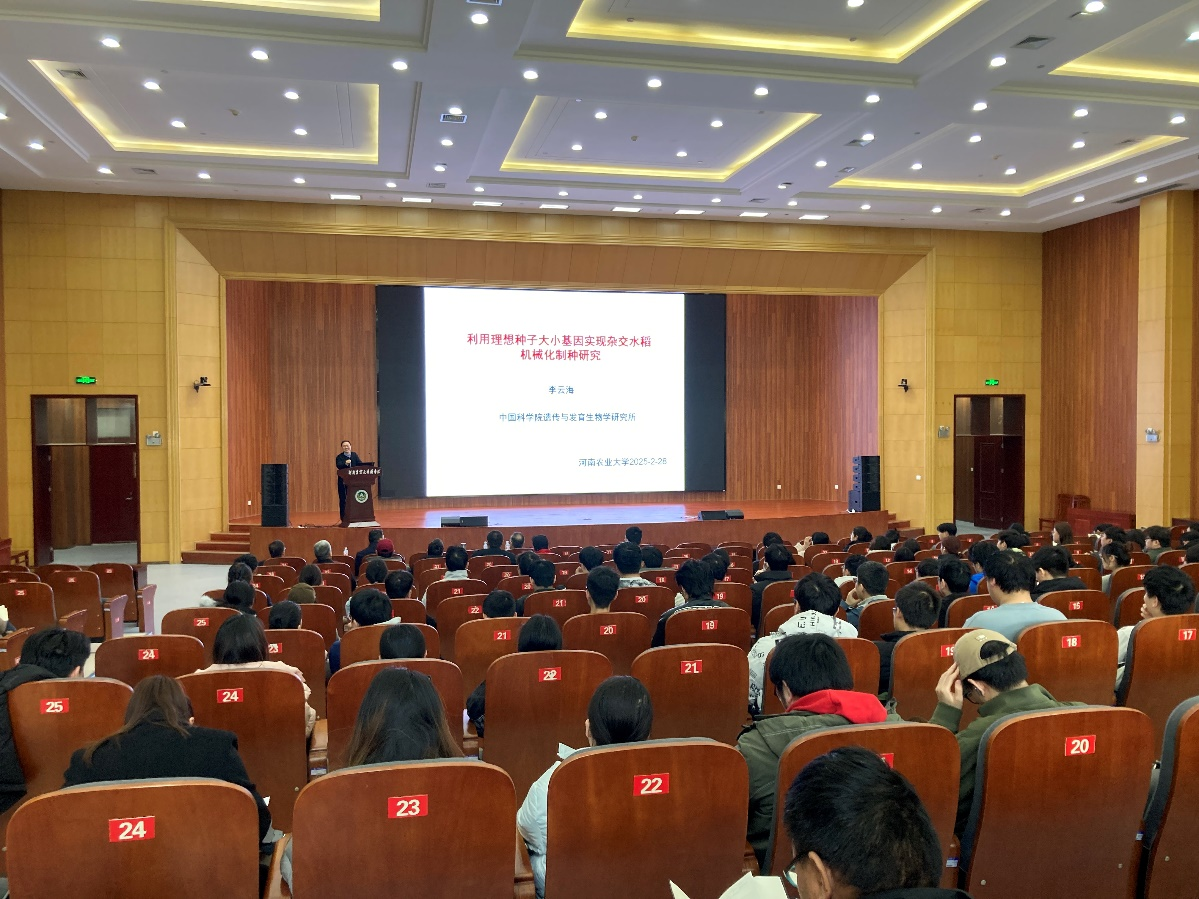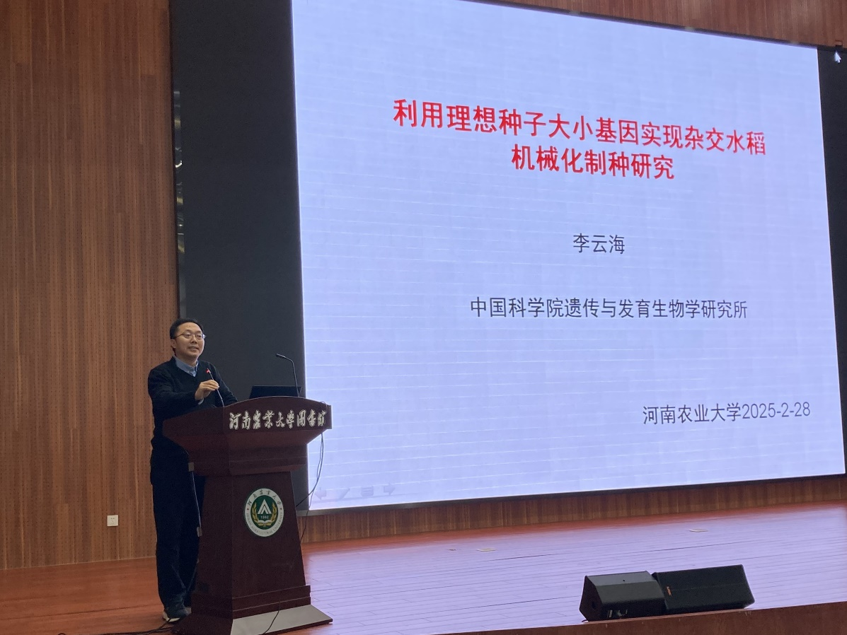 李云海研究员以《利用理想种子大小基因实现杂交水稻机械化制种研究》为题,详细介绍了其团队在利用理想种子大小基因实现杂交水稻机械化制种方面的最新研究进展。他深入浅出地讲解了种子大小基因的分子调控机制,以及如何利用这些基因优化种子大小,从而推动杂交水稻制种的机械化进程。李云海研究员指出,这一研究不仅可将水稻制种成本大幅降低,未来还可将相关技术拓展至玉米、小麦等主粮作物,为保障国家粮食安全提供新思路。